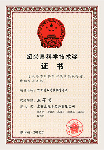 公司已先后通過(guò)IATF16949質(zhì)量管理體系認(rèn)證、ISO/14001環(huán)境管理體系認(rèn)證和OHSAS18001職業(yè)健康安全管理體系認(rèn)證。是“國(guó)家高新技術(shù)企業(yè)”“行業(yè)龍頭企業(yè)”和“全國(guó)百家優(yōu)秀汽車(chē)零部件供應(yīng)商”。